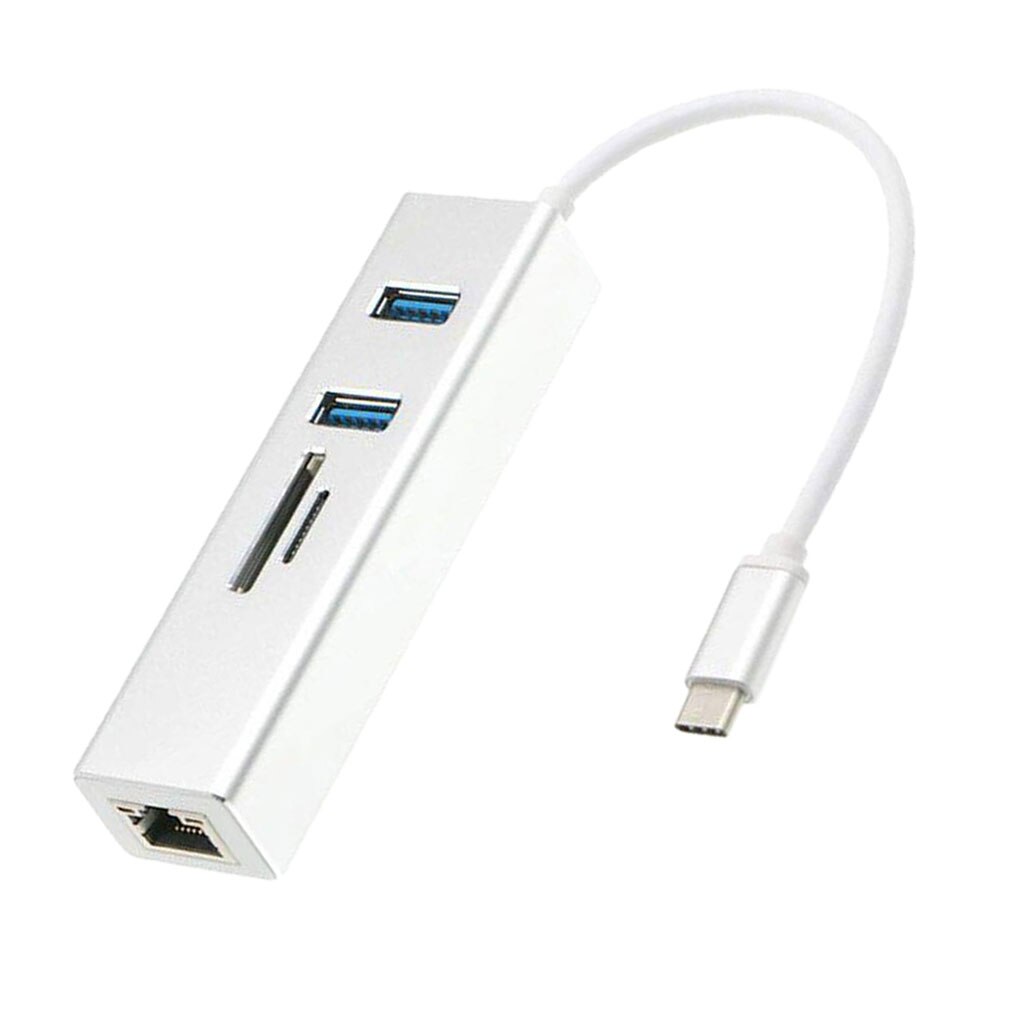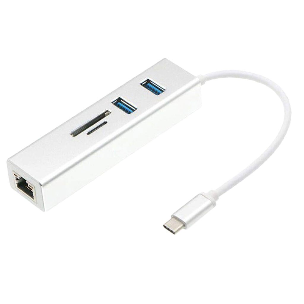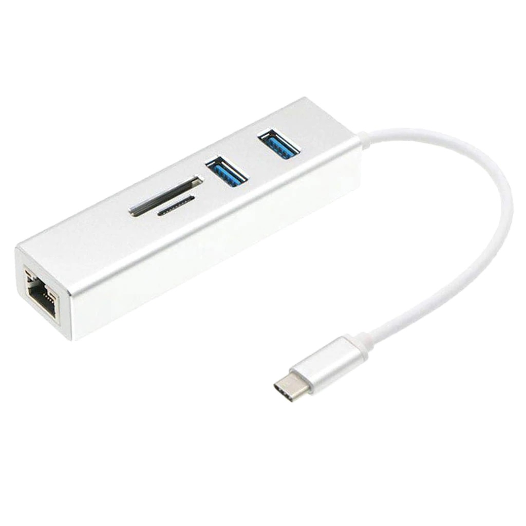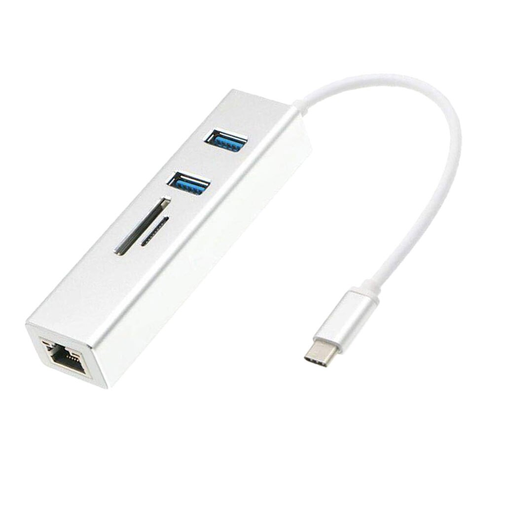 Adaptor MTP 5in1 Enthernet USB Type C la RJ45, 2x USB 2.0, SD/MicroSD Card Reader