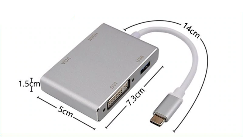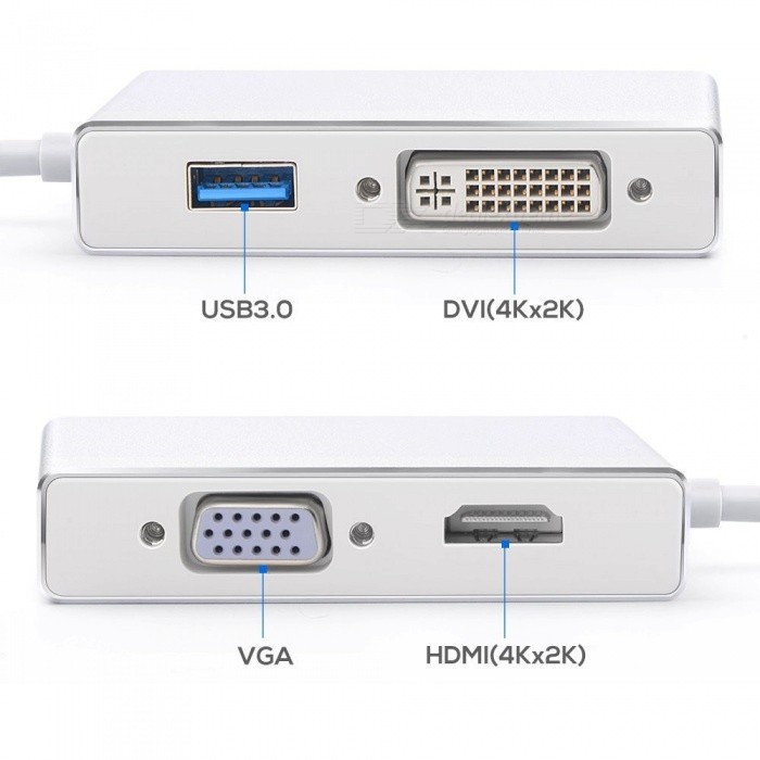 Adaptor MTP Thunderbolt 3, Convertor USB 3.1 Type C la HDMI 4K, USB 3.0, VGA si DVI