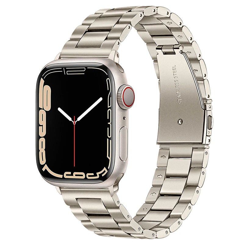 Curea Metalica pentru Apple Watch, MTP, 3 Lynk Metal Loop, Compatibila cu Apple Watch 1/2/3/4/5/6, Model Slim, Super Usor, Starlight