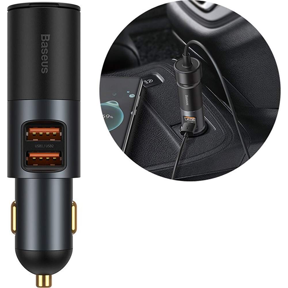 Incarcator de masina cu incarcare rapida Baseus Share Together cu port de expansiune pentru bricheta, 2x USB, 120W (gri)