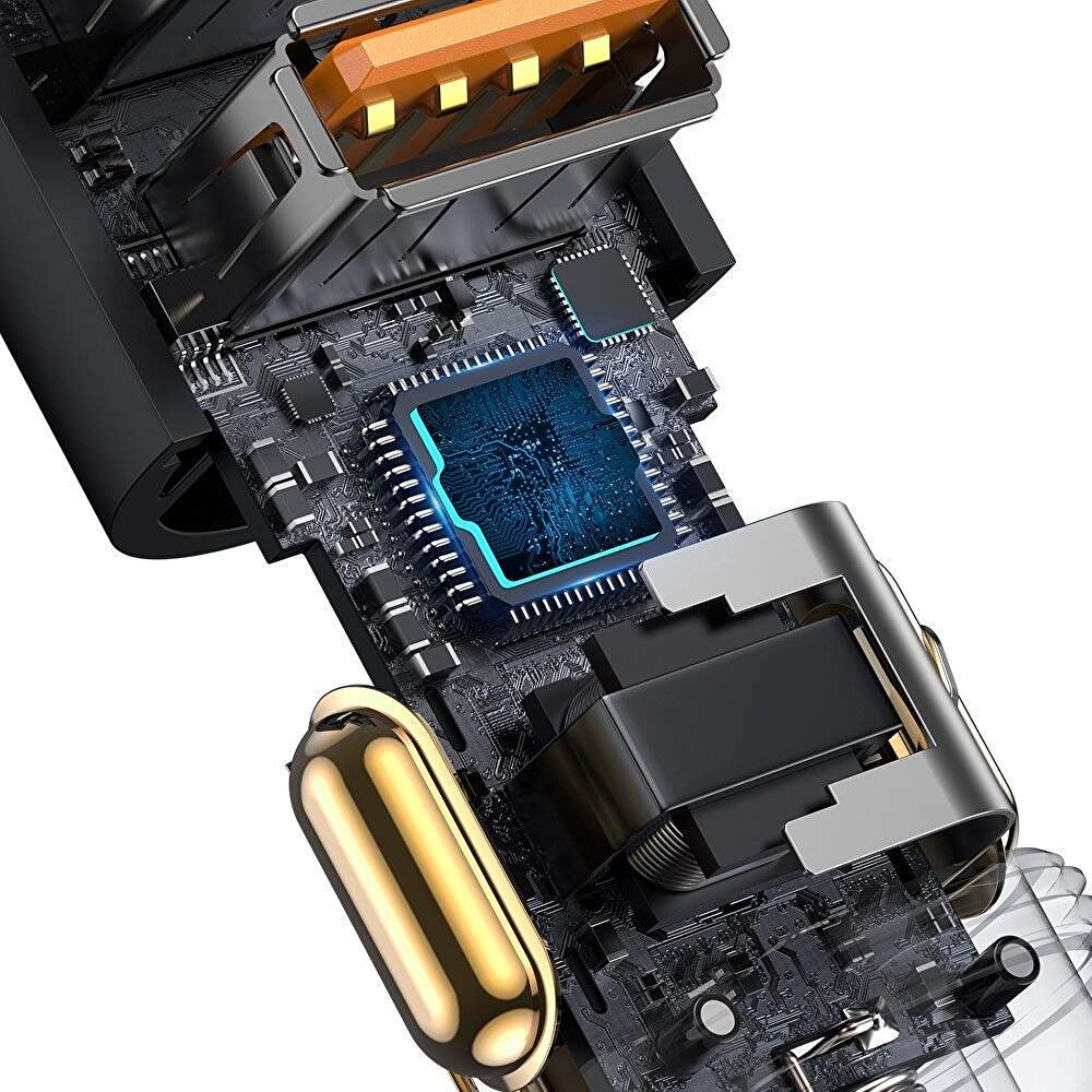 Incarcatorul auto pentru bricheta Baseus a fost echipat cu 2 porturi USB, precum si un port de expansiune de 60W. Va permite sa incarcati rapid pana la 2 dispozitive in acelasi timp, cu o putere totala de pana la 120 W. Cipul inteligent incorporat va protejeaza echipamentul impotriva deteriorarii. Produsul este compatibil cu vehicule de la 12V la 24V. Incarcatorul este, de asemenea, extrem de durabil si usor de utilizat. Un capac special de silicagel il protejeaza de praf.