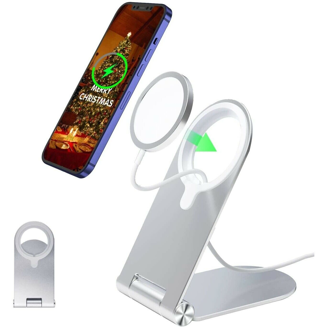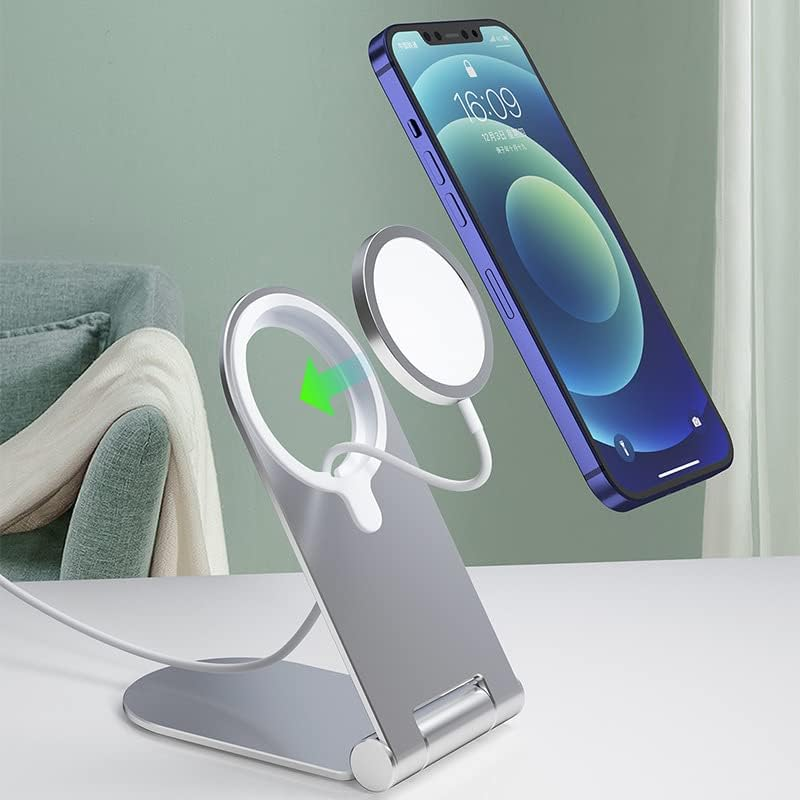 Stand birou Aluminium MTP pentru telefon, Compatibil MagSafe, Pliabil, Silver